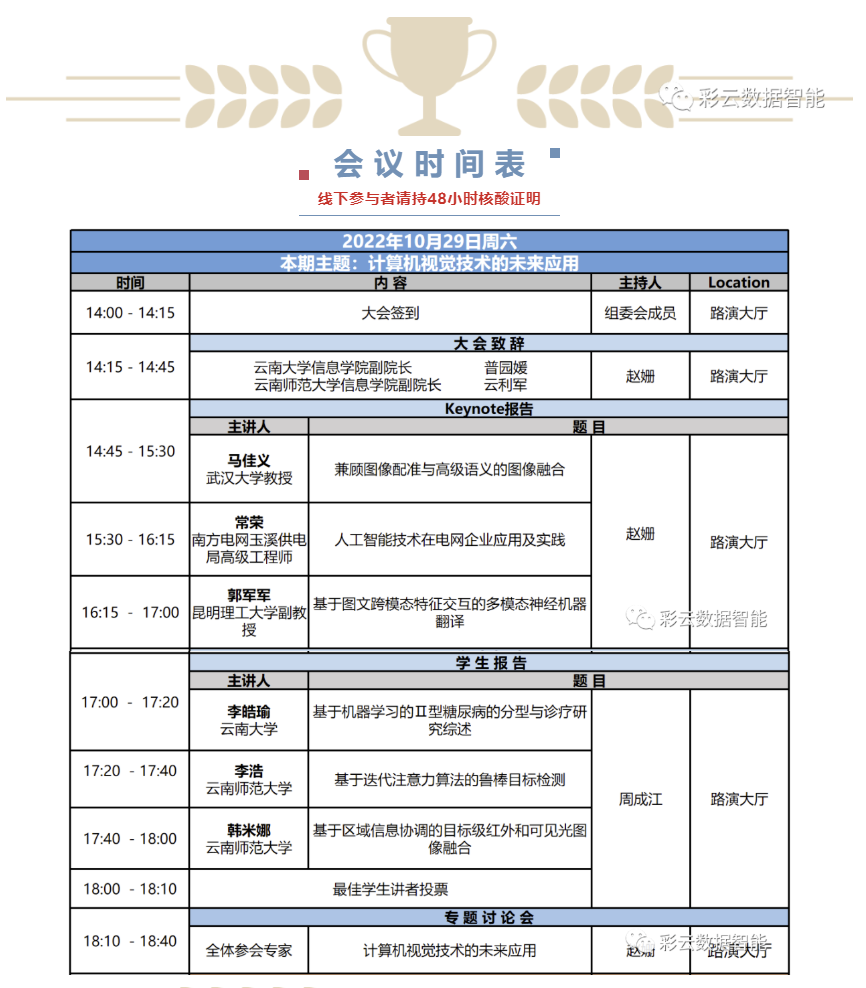 科技创新赋能未来,喜迎yl6809永利官网百年校庆,yl6809永利官网学术系列活动第一期,彩云数据智能论坛将于2022年10月29日(周六)下午14:15举行,地点:云南省昆明市呈贡区呈贡信息产业园云上小镇9栋1楼路演大厅,诚邀各位师生参加!
