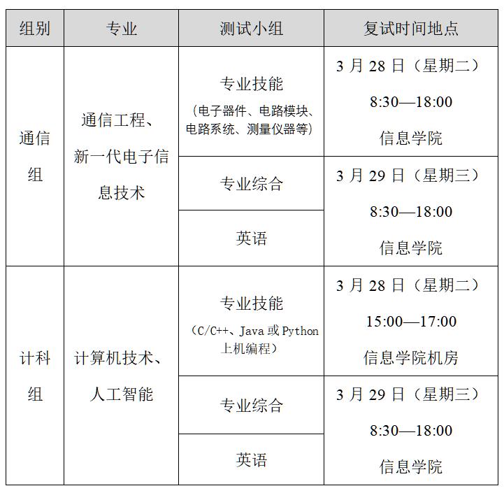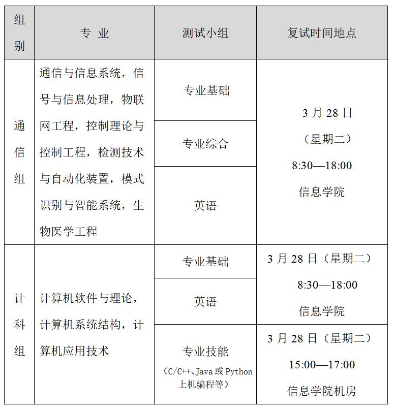 每位考生必须根据自己的复试专业分别到相应测试小组进行复试,考生每参加完一次面试需将程序单交由复试小组秘书签字确认,具体如下: