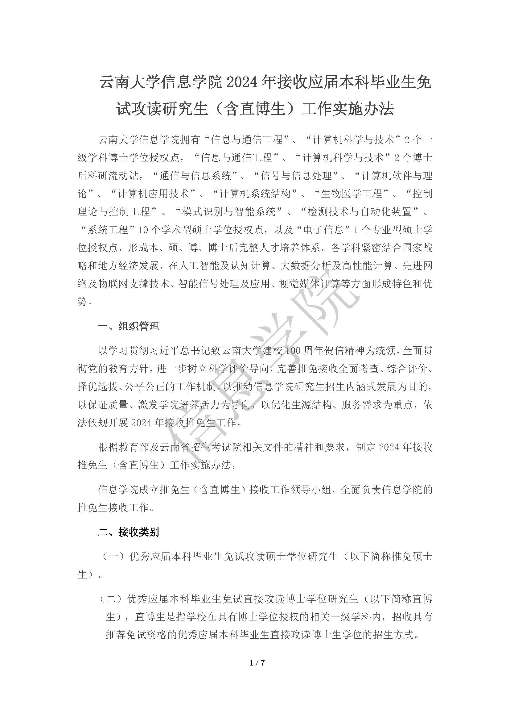 yl6809永利官网2024年接收应届本科毕业生免试攻读研究生(含直博生)工作实施办法
