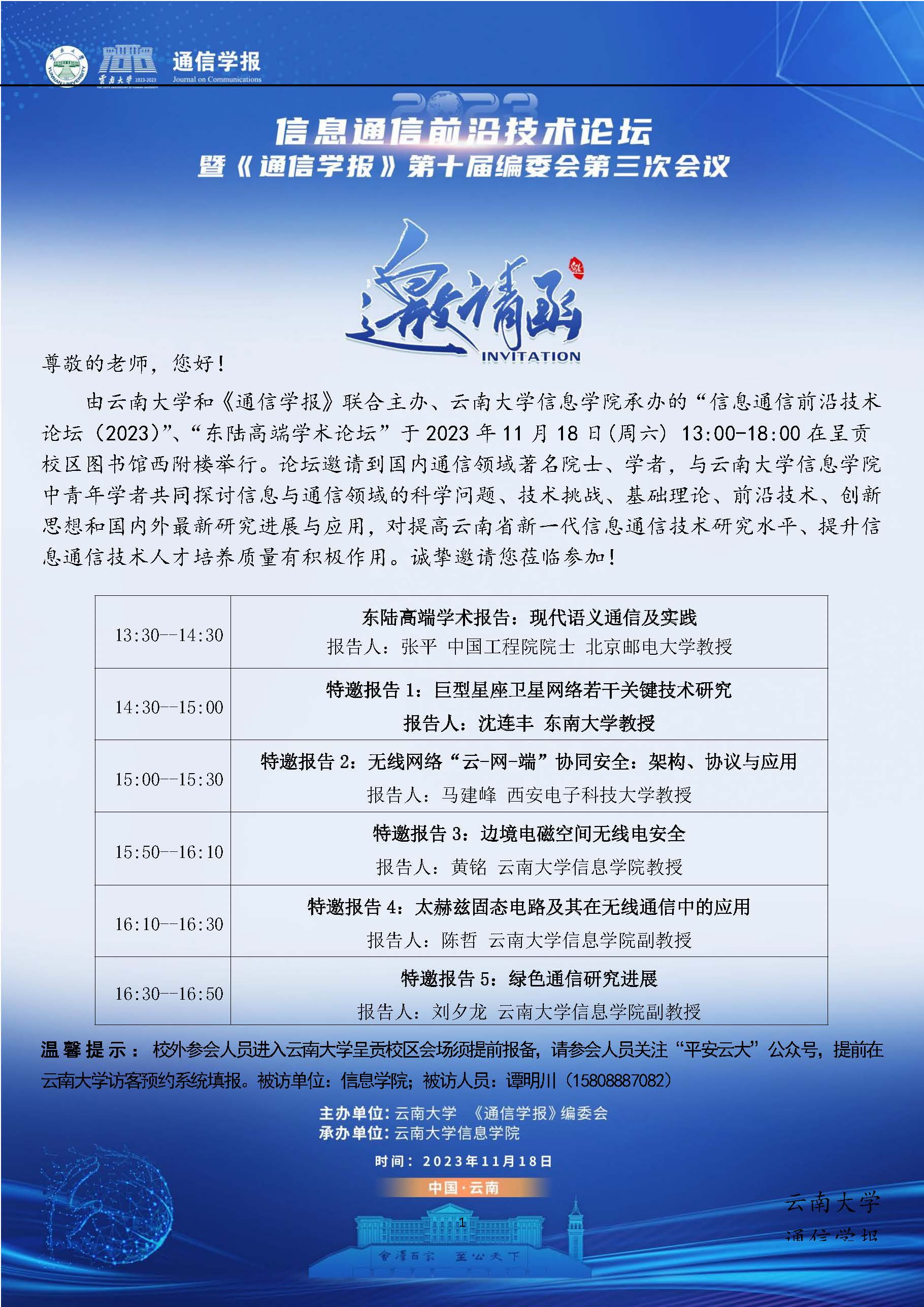 信息通信前沿技术论坛暨《通信学报 》第十届编委会第三次会议