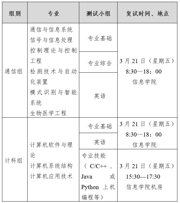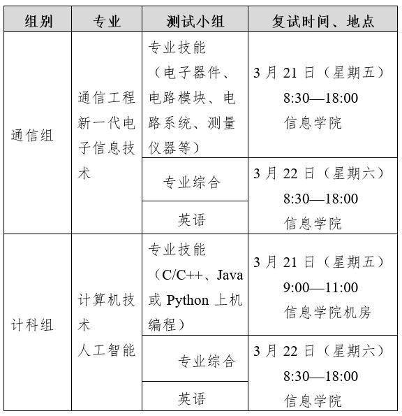 每位考生必须根据自己的复试专业分别到相应测试小组进行复试,考生每参加完一次面试需将程序单交由复试小组秘书签字确认,具体如下: