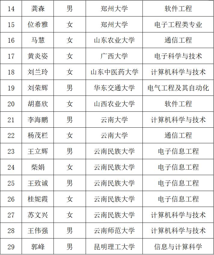 我们已通过邮件方式向上述39名同学发送了拟录取通知,请大家于2018年7月8日中午12点前发送邮件到suqian@ynu.edu.cn确认是否参加,邮件主题:2018云大信息夏令营,邮件内容:姓名+学校+是否参加。过时无邮件回复的视为自动放弃,确认参加的同学请加QQ群:云大yl6809永利官网夏令营683096204!