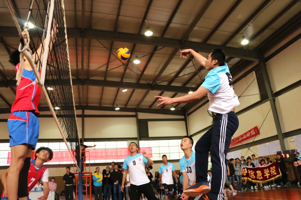 焦点之战,冠亚军之争,在百人助威团的呐喊声中拉开序幕,学院领导也到场助威,面对专业队员,男排小伙子们,毫不怯场。
