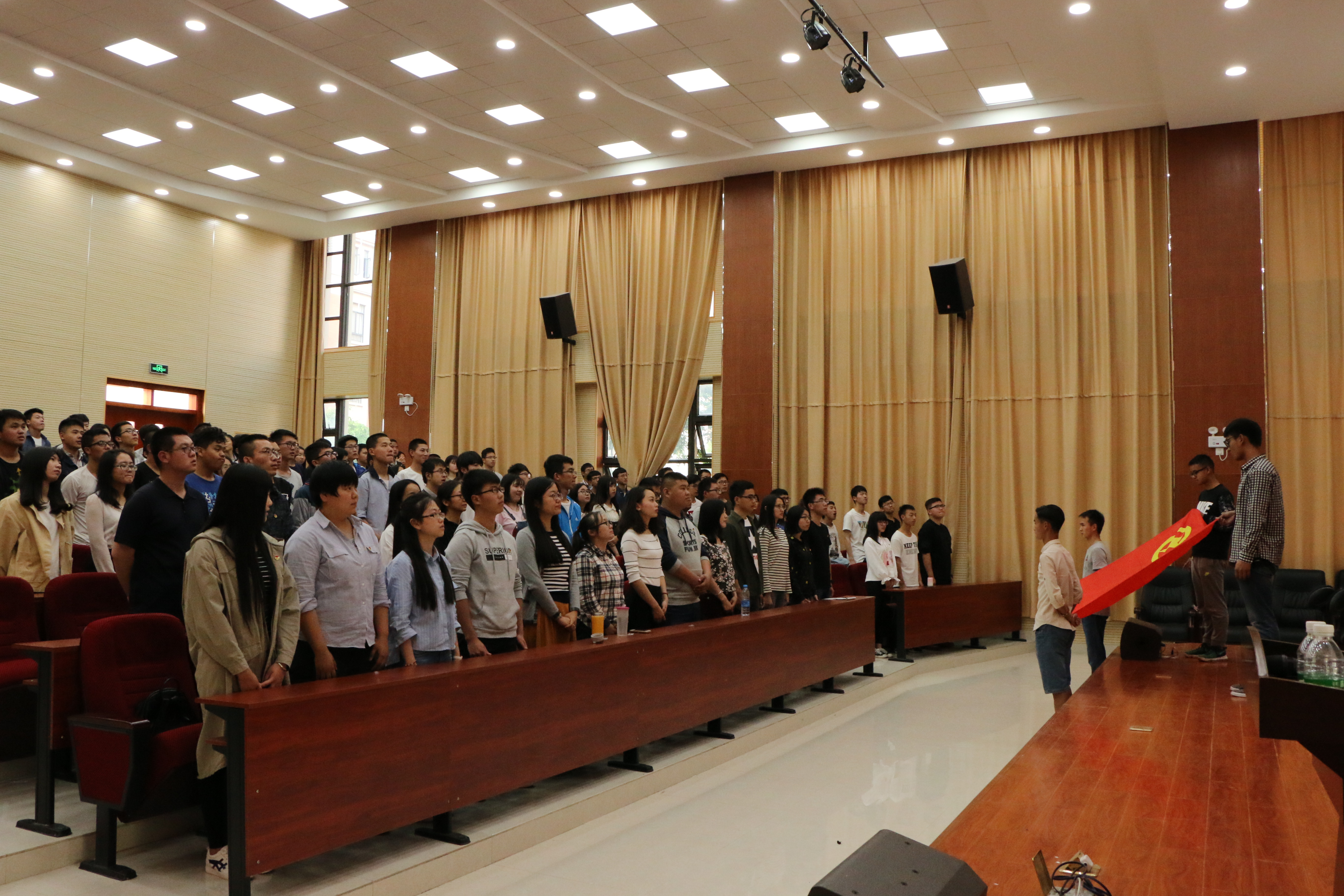 团歌奏响,大会正式揭开序幕。“我们是五月的花海,用青春拥抱时代;我们是初生的太阳,用生命点燃未来”。一句句激昂的歌词,既是我们对共产主义的崇敬与承诺,也有国家民族对我们的呵护与期盼。歌声落下,全体团员重温入团誓词,坚守对团的诺言,勇于实践,敢于创新,时刻不忘一个青年团员的身份。