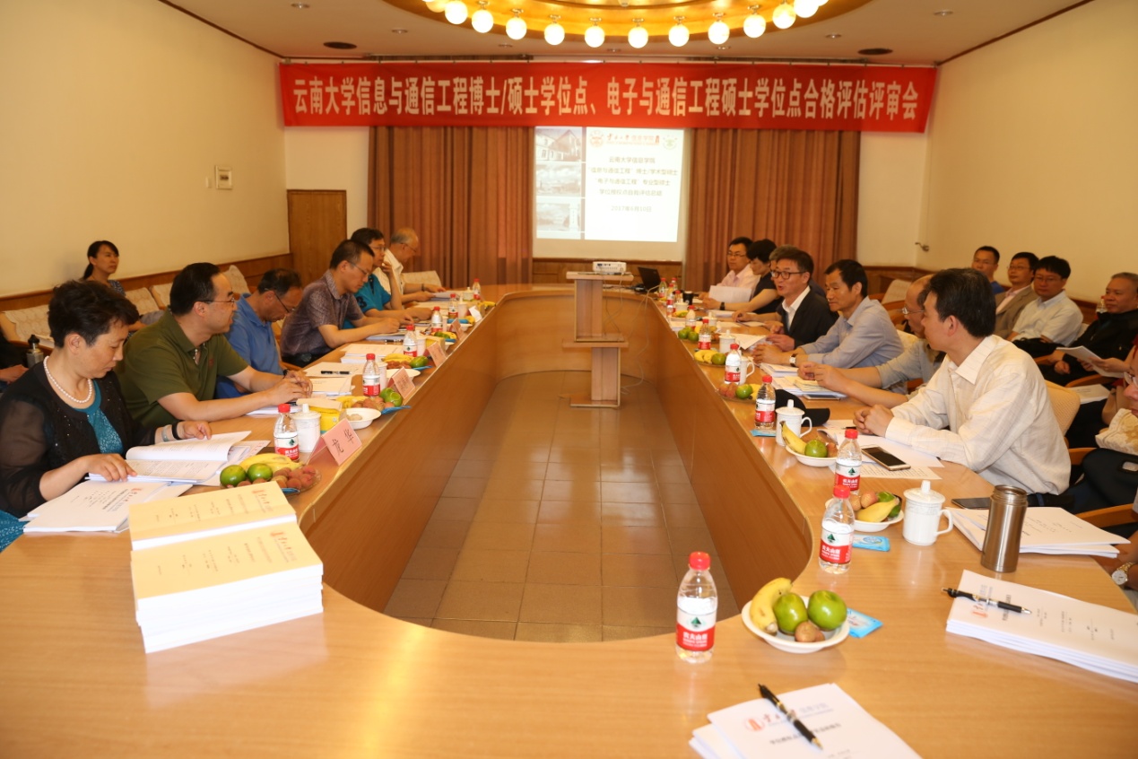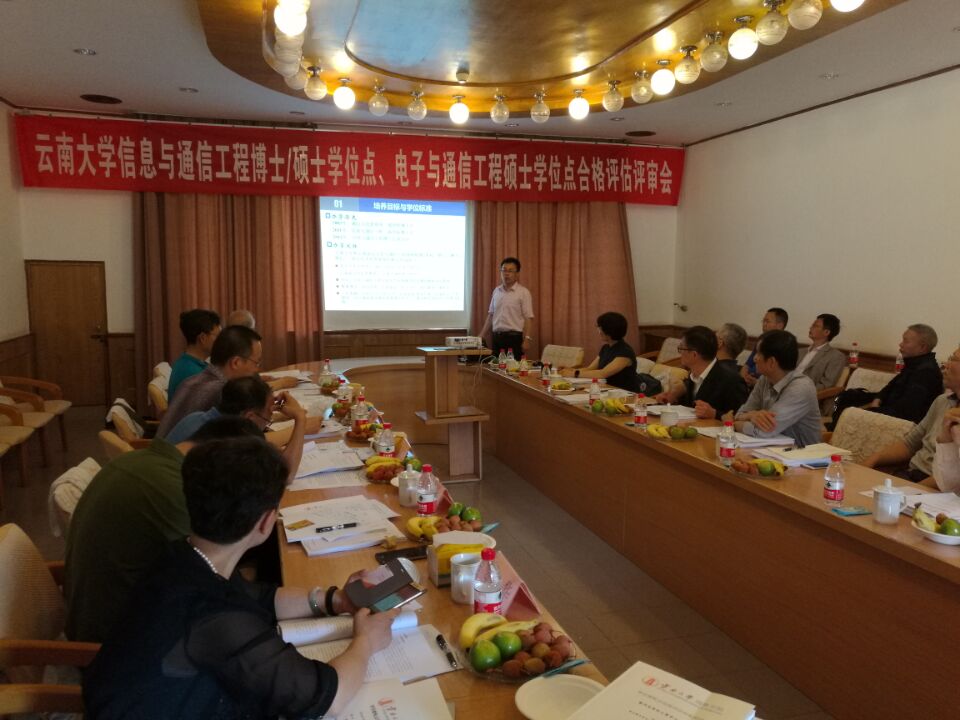 2017年6月10日上午,yl6809永利官网信息与通信工程博士/学术硕士、电子与通信工程专业硕士学位点合格评估校外专家现场评审会,在yl6809永利官网东陆校区科学馆13会议室召开。评估专家组包括:教育部“长江学者奖励计划”特聘教授、北京理工大学校长助理、第七届国务院学科评议组成员、英国工程技术学会会士(IET Fellow)龙腾教授,中科院计算所无线通信技术研究中心主任、移动计算与新型终端北京市重点实验室常务副主任石晶林研究员,云南民族大学副校长、云南省高校学术委员会委员高飞教授,昆明理工大学信息工程与自动化学院原院长、博士生导师、中国自动化学会理事张云生教授,昆明理工大学通信工程系原主任、中国通信学会会士龙华教授,云南省无线电监测中心主任陈德章高级工程师。