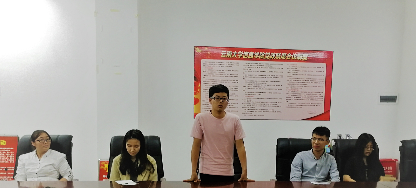 各个部门干事也发表了自己的看法。其中牛力同学的讲话鼓舞人心,令人深省。他表明了现在我们与其他双一流高校仍存在着差距,我们应该严格要求自己,打破身份固化,激发活力,不断进步成为一流大学的一流人才。今日我以云大为荣,明日云大以我为荣的口号激励着每一位同学。