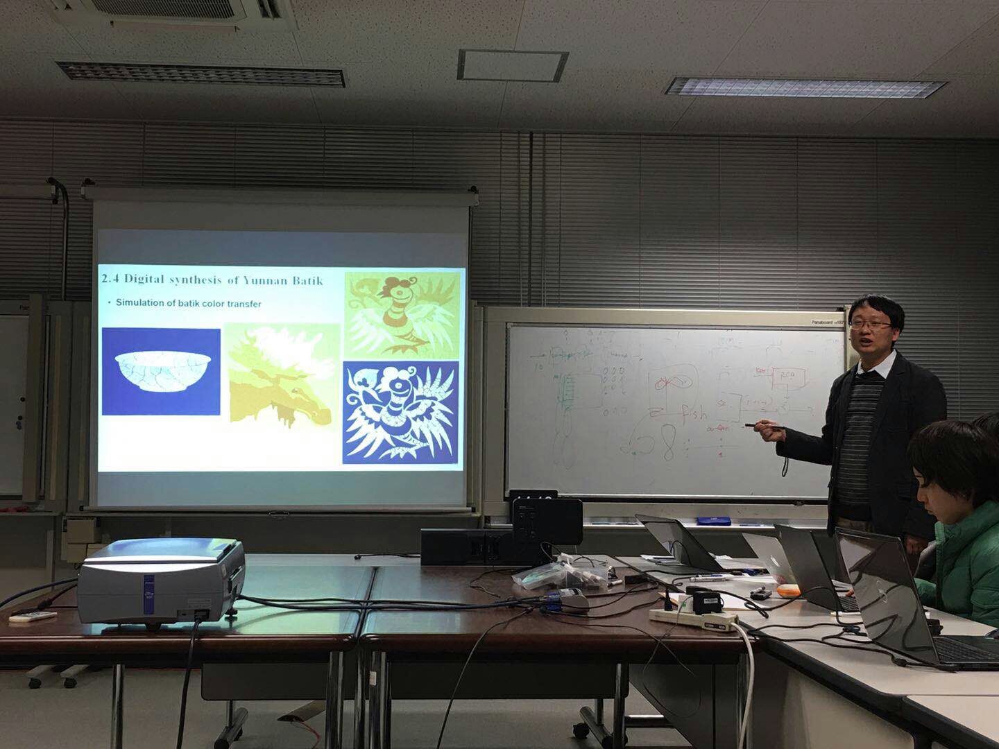 交流访问期间,岳昆教授、钱文华副教授参加了奈良先端科学技术大学院大学新春年会,参观了信息科学研究科中岛康彦教授带领的计算机系统结构研究室,参加了研究室的讨论会。岳昆教授对信息科学研究科研究生做了题为“Discover and Fusion of Uncertain Knowledge in Data”的特邀报告,钱文华副教授做了题为“Digital media calculation and protection of the national cultural in Yunnan”的学术报告,双方就相关问题进行了热烈讨论。