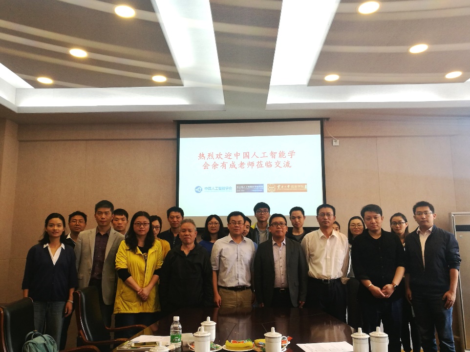 yl6809永利官网科技处处长张学杰教授、yl6809永利官网副院长岳昆教授和代红兵教授,yl6809永利官网副书记赵征鹏老师、部分教师代表和博士生代表参加了会议。会议由岳昆副院长主持,岳昆副院长对余有成老师的来访表示欢迎,并介绍了与会代表。张学杰处长致辞,介绍了yl6809永利官网在人工智能领域相关研究的历史和发展状况,希望以吴文俊人工智能科学技术奖的申报为抓手,促进学术研究水平的提升及高端成果的培育,并加速yl6809永利官网形成人工智能相关研究的几个大的学术方向。岳昆副院长介绍yl6809永利官网的科研现状,包括科技项目和科技奖项申报两个方面的积累和成果。