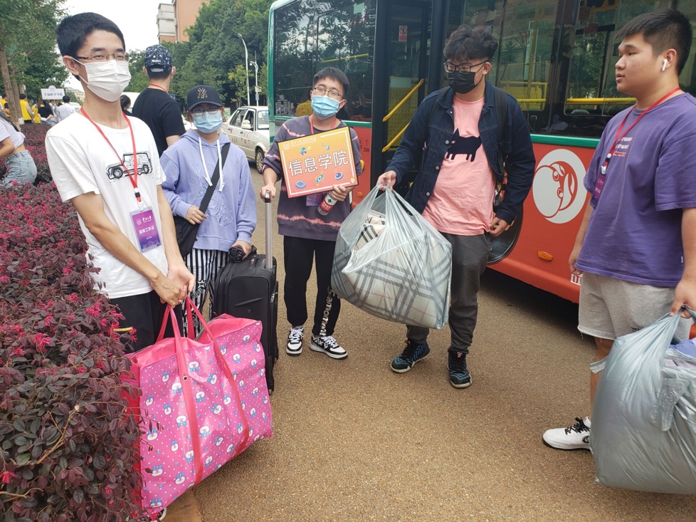 学院迎新点工作人员、志愿者分工明确,认真核查新生身份信息,做好工作记录,逐项发放新生手册及相关入学资料,整个报到过程井然有序。学院在西门迎接点、楠苑汽车站、校医院汽车站同时安排志愿者,引导乘坐摆渡车的新生入住宿舍。