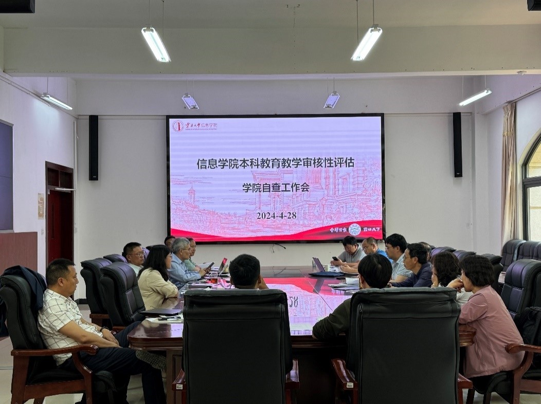 yl6809永利官网于2024年4月28日下午召开本科教育教学审核评估学院自查工作会,对近期开展的审核评估工作进行总结。会议由教学副院长主持,学院党委书记、学院督导、各专业/中心主任、系秘书、教务主任、教务秘书、档案管理员等参会。