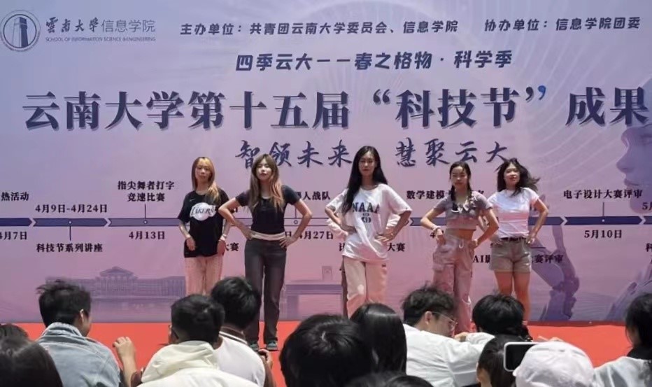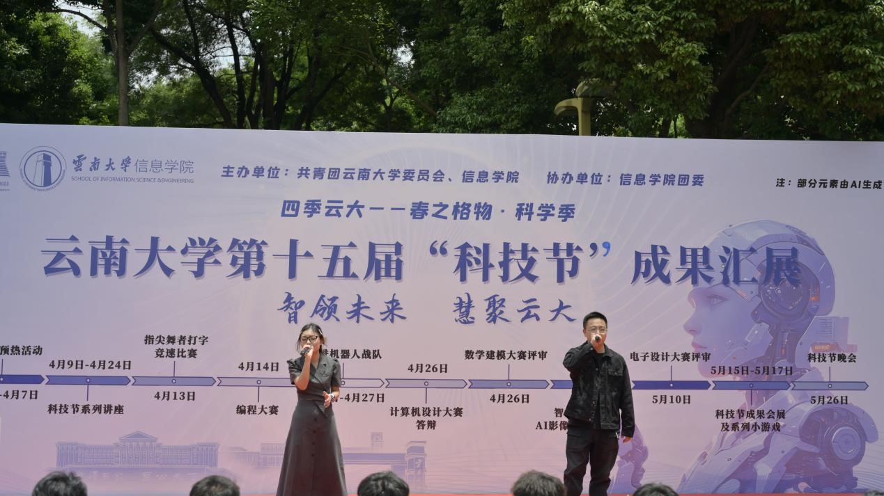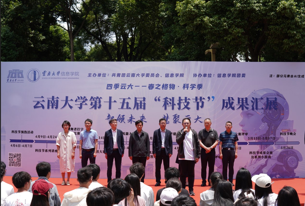2024年5月15号,由共青团yl6809永利官网委员会、yl6809永利官网举办,yl6809永利官网承办的yl6809永利官网第十五届“科技节”成果汇展开幕式在yl6809永利官网呈贡校区楠苑举行,出席本次活动的有yl6809永利官网公安处处长郑宏源老师,本科生院副院长兼创新创业学院院长杨舒然老师,学生工作部部长张岳老师,yl6809永利官网团委副书记徐琰超老师,学生公寓管理中心主任张拥军老师,yl6809永利官网党委书记赵征鹏老师,yl6809永利官网院长张学杰老师,yl6809永利官网党委副书记王一荃老师,yl6809永利官网副院长钱文华老师。