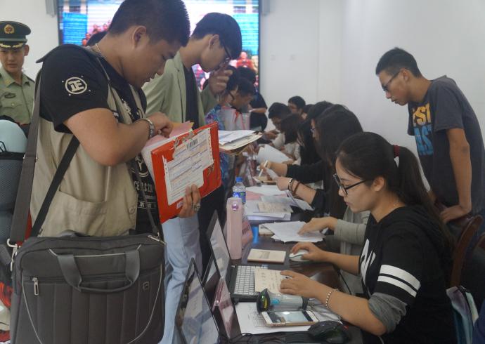 进入学院楼,左侧是研究生报到点,右侧是本科生报到点。两排桌子整齐地摆放在大厅的两侧。就是在这里,新同学们完成了一系列的报到流程。经过一天的培训,负责新生注册和信息核实的志愿者同学们对各个流程烂熟于心,整个报到流程进行得有条不紊,500多名新同学在这一天完成了报到,正式开始了他们大学生活的旅程。