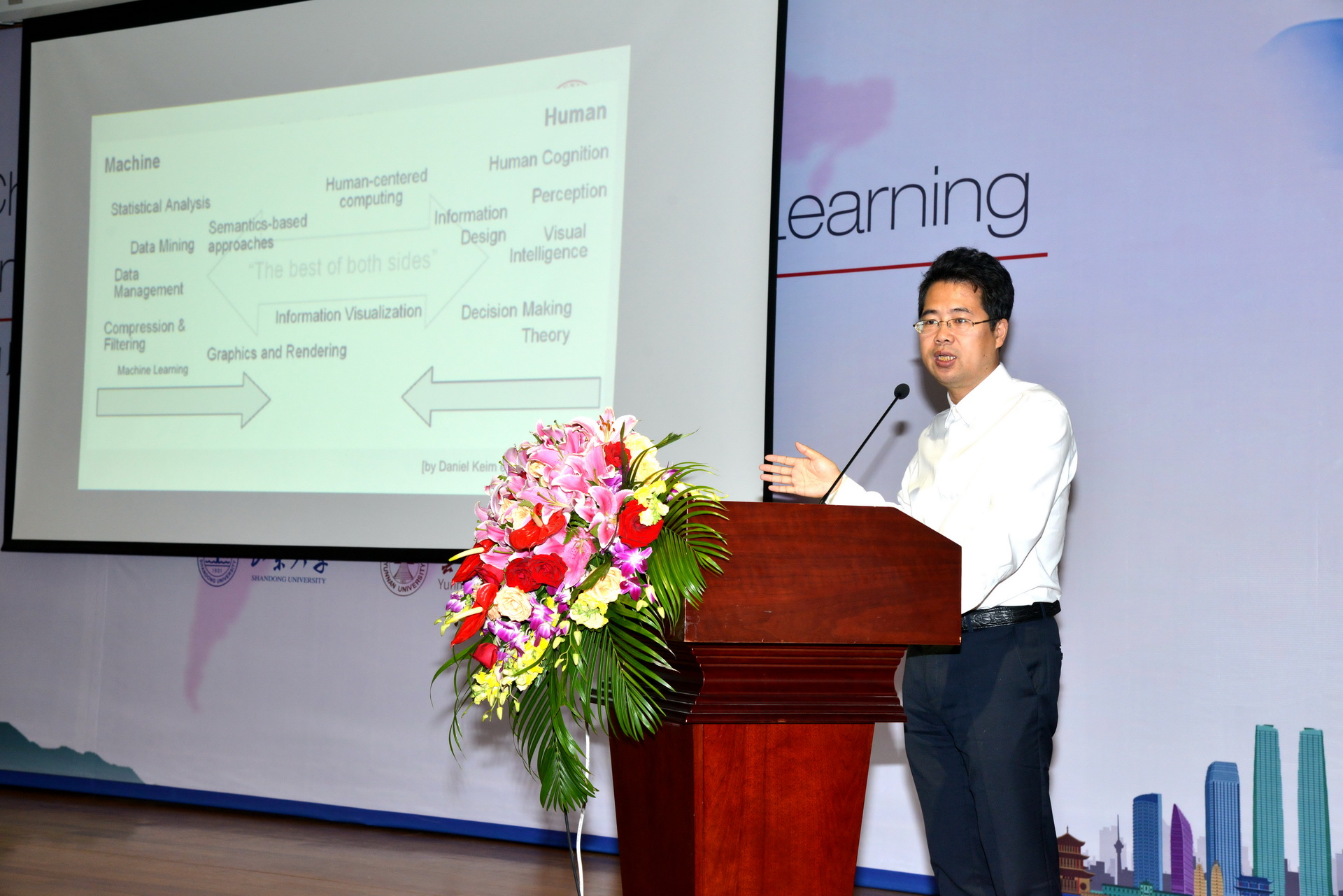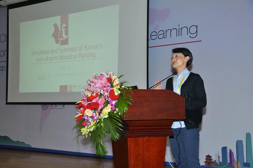 代表东道主,大会执行主席、yl6809永利官网徐丹教授做了题为《Simulation and Synthesis of Yunnan’s Out-of-Print Paintings》的特邀报告,详细介绍了近几年徐丹教授带领的视觉媒体计算团队在少数民族文化计算及保护、图形图像融合、虚拟现实等方面的特色研究工作,吸引了与会专家和学者的浓厚兴趣。